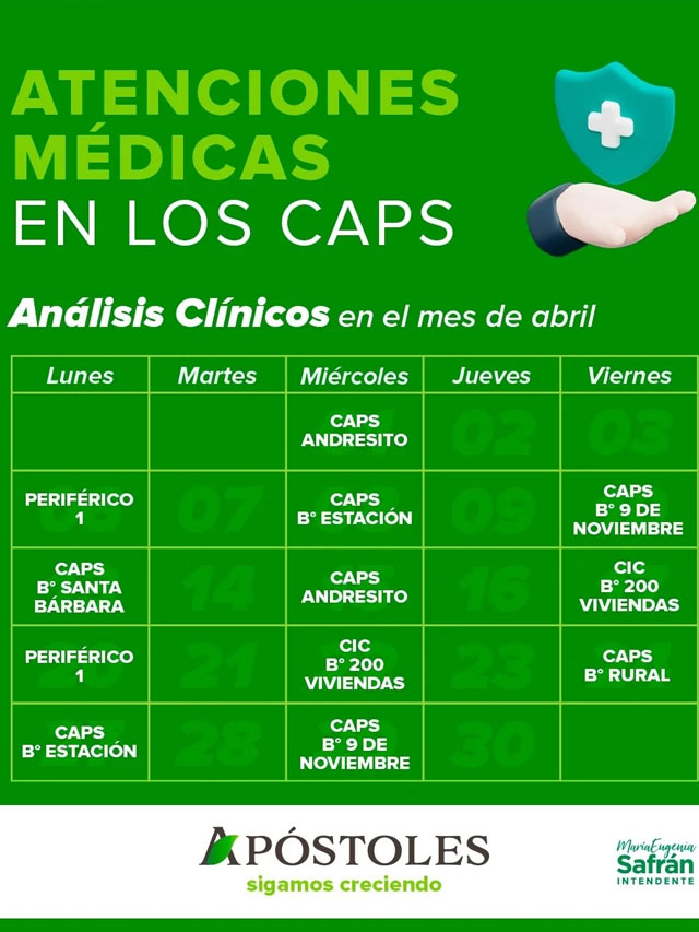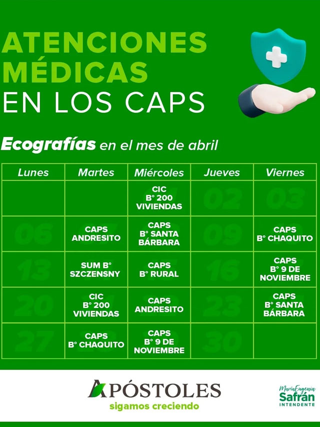 AGENCIA MISIONES.UNO | Durante el mes de abril, los Centros de Atención Primaria de la Salud (CAPS) de Apóstoles brindan servicios de análisis clínicos y ecografías en distintos barrios, con el objetivo de facilitar el acceso a estudios médicos.