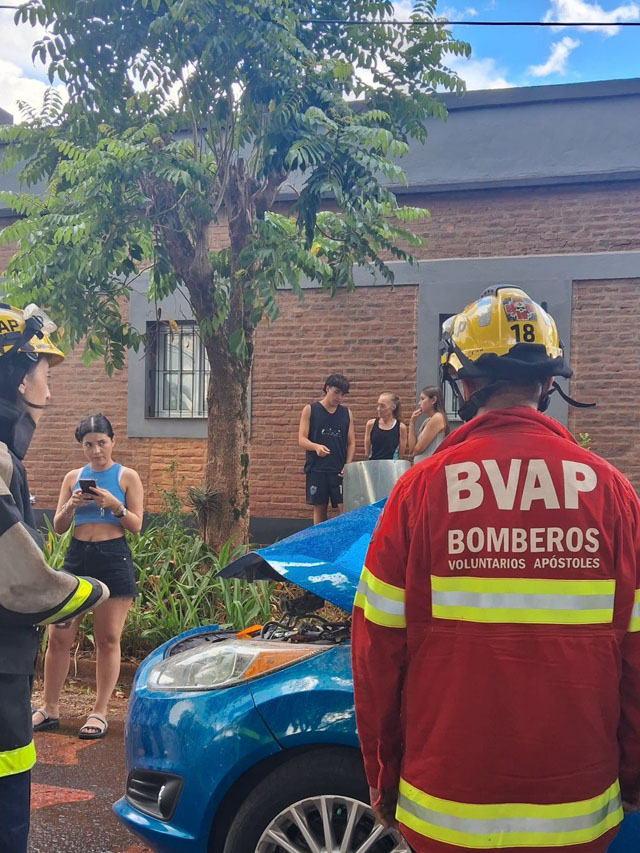 AGENCIA MISIONES.UNO | Este 18 de febrero de 2026, alrededor de las 14:20 horas, se registró un accidente vehicular en la intersección de la Avenida Juana de Ibarbourou y Venezuela, en la ciudad de Apóstoles. Personal de Bomberos Voluntarios acudió al lugar para asegurar la escena y prevenir riesgos adicionales.