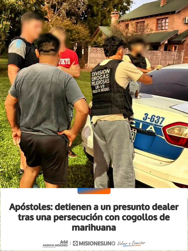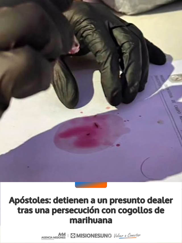 AGENCIA MISIONES.UNO | Un joven de 22 años fue demorado por la Policía de Misiones en Apóstoles luego de intentar huir durante un operativo preventivo. Llevaba cogollos de marihuana listos para su presunta comercialización, con un valor cercano a $1,8 millones.