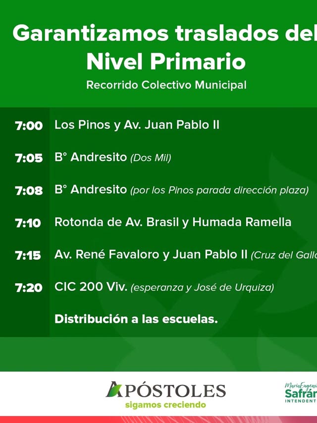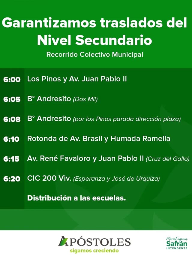 AGENCIA MISIONES.UNO | El Municipio de Apóstoles implementó un operativo de traslado para estudiantes luego de la suspensión del servicio de transporte público, con el objetivo de garantizar que los alumnos puedan asistir a clases con normalidad.