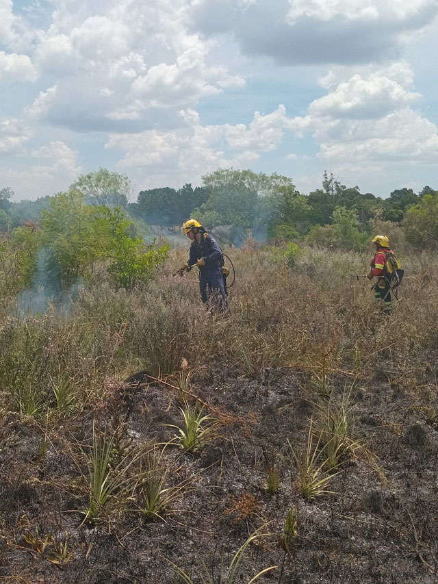 Al arribar, los efectivos constataron la presencia de un incendio de malezas que se expandía rápidamente por el campo. Con tareas intensas y el despliegue de recursos, lograron controlar la situación y extinguir las llamas de manera efectiva, evitando que el fuego se propagara hacia áreas cercanas.