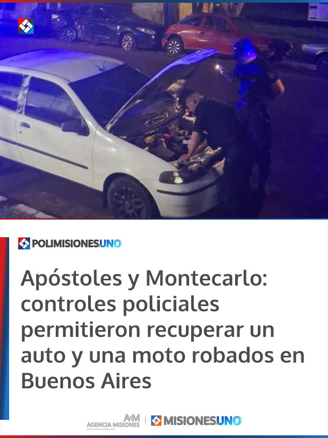 Apóstoles y Montecarlo: controles policiales permitieron recuperar un auto y una moto robados en Buenos Aires