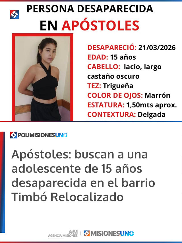 AGENCIA MISIONES.UNO | Intensifican la búsqueda de Xiomara Alejandra Barboza, [...]
