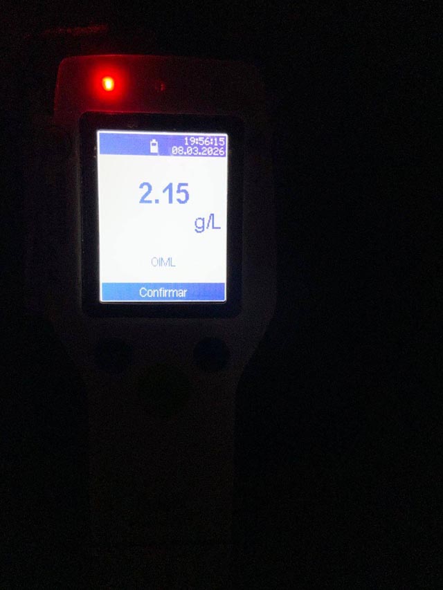 Ante la situación, se solicitó la intervención de personal de Tránsito Municipal, que realizó el test de alcoholemia al conductor, identificado como Ernesto Emanuel R. (38). El resultado arrojó 2,15 gramos de alcohol en sangre, más de cuatro veces el límite permitido.